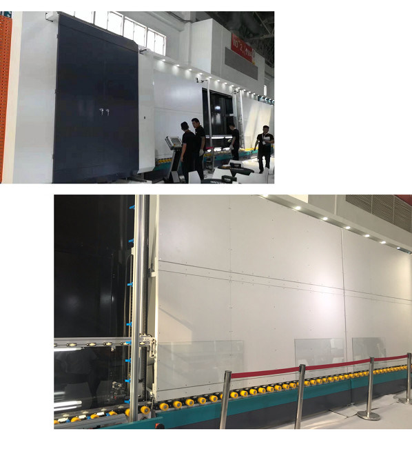 三ガラスの生産では、最初の2部分が押された後、吸引のコップ ガラスの前部押す版は開き、ガラスの第3部分はアルミニウム フレームのアセンブリ セクションに置かれます。ガラスは終了した後、平らな押すことのための合成の版の平らな押すセクションを書き入れ、それから回転テーブルに自動的に移ります。