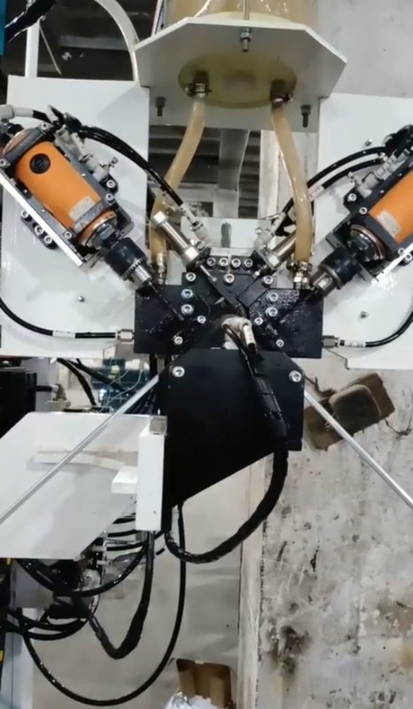自動シーリング ロボットのために、機械頭部は機械、それの前にステップ ガラスを作り出すとき二重ガラスの生産ラインが付いている実質の関係を達成できますあります。