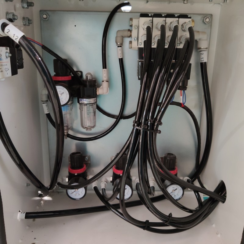 空気圧力調整弁を箱の左側に取付け、0-0.8mpaの調整範囲と空気源を接続して下さい。空気源は乾燥した圧縮空気を要求します。