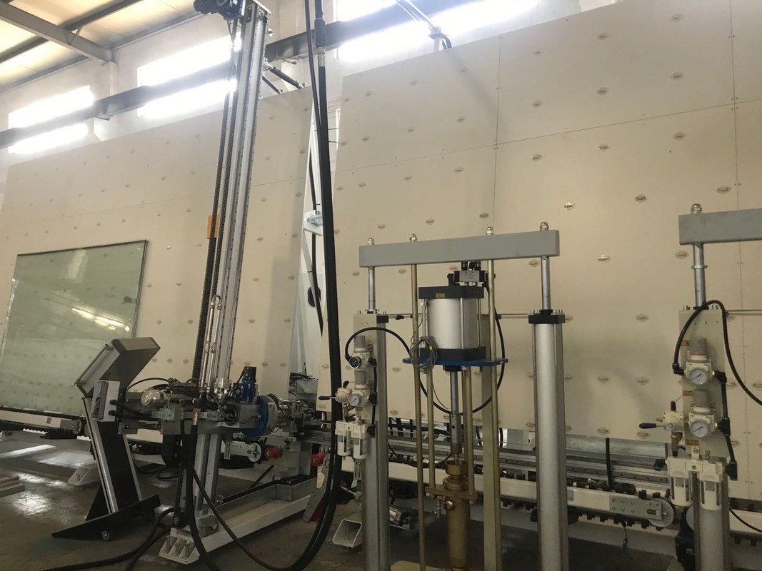 自動密封機械は絶縁ガラスの外の層を密封するために使用される。サーボ機構を通して絶縁ガラスのシーリングそして接着の性能を助けるために、混合された絶縁の密封剤は絶縁ガラスの外の層に均等に加えられる