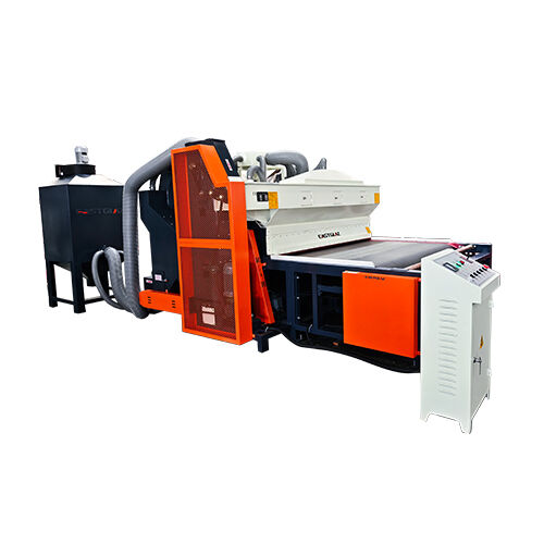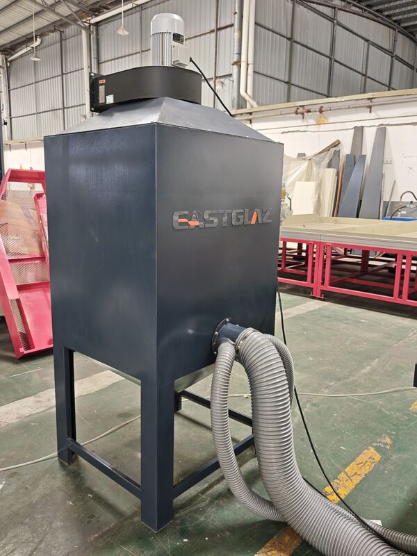 Full-automatic glass sandblasting machine contains of dust collecting--sand sweeping--transportation--grit feeding--sandblasting--sound attenuation--grit filtration--grit equalization--grit storage--shakeout生産プロセスの各セクションは自動的に完了します. 改善された作業環境と労働の密度を削減します. 生産コストを大幅に削減するため,機械は顧客の大多数によって受け入れ,選択されています.この機械は,ガラス,アクリル,石,セラミック,金属などの材料の表面を砂に適しています.